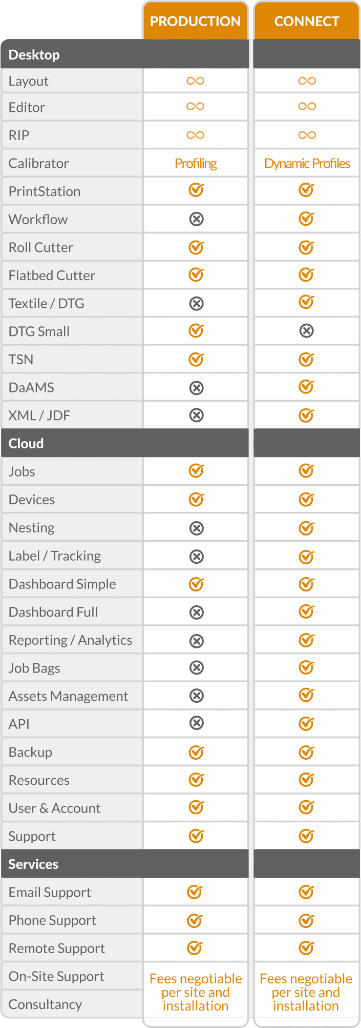 PrintFactory Connect is ideal for larger remote setups with multiple Editor installations, multiple printers and cutters, and (if you want them) multiple RIPs ~ all centrally controlled. Dashboard reporting. Scalable workflows. PRODUCTION improves print quality and starts saving ink and media instantly.